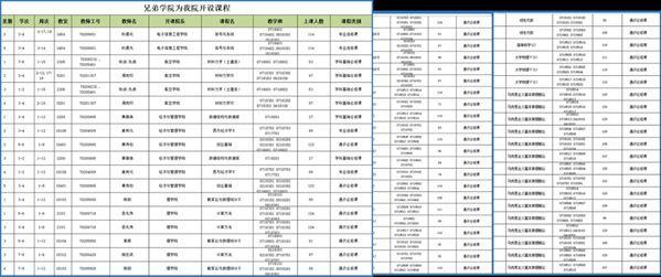 兄弟学院为我院开设课程确认表(部分),共计开设105门次