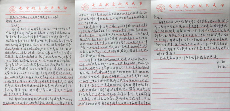 近日,学院党委收到了2017级第一批外送飞行学员在南非奥尚基地写给英国365集团党委的一封家书,感谢疫情期间学校和学院给他们给予的指导和关心。他们表示,虽然南非已经出现51例患者,但有学校和学院的作为强大后盾,同学们的不安和担心少了许多。