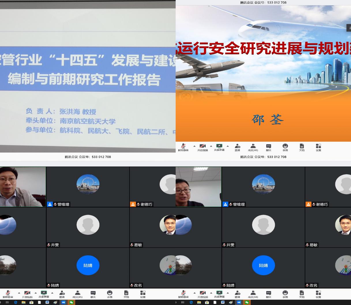空管“十四五”发展与建设规划编制组长张洪海教授向大家介绍了民航空管行业“十四五”发展与建设规划编制与前期研究工作,系统性地介绍了“十四五”空管发展的重点项目和主要任务。邵荃副教授作了“民航运行安全研究进展与规划建设”的报告,全面地介绍了“十四五”民航运行安全方面的研究目标、研究方向、重点研究项目等。