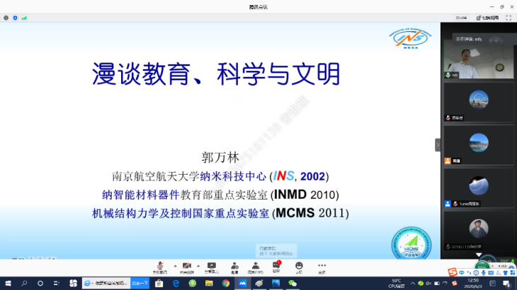 郭万林院士透过当下疫情和国际形势,通过回顾他几十年来在前沿力学研究中的心路历程、所得成果及体会,与大家一起探讨如何从学习已有知识技能,认识当前人类面临的挑战和问题。最后,郭万林号召所有教师,面向科技进步和国家发展需要,立足作为教师的初心和使命,为人才培养、科学研究贡献出自己的力量。