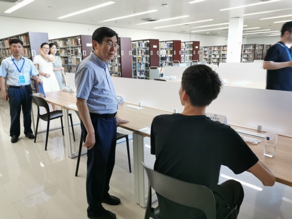 施大宁一行首先走访了天目湖校区图书馆的开放使用情况,并与馆中正在自习的学生进行交谈,询问他们在校区学习的感受,以及对图书馆的建议。