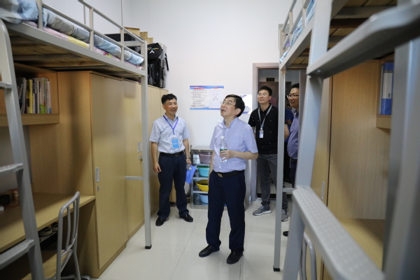 最后,施大宁重点视察了飞行学生宿舍。在看到窗明几净、井然有序的宿舍内务时,施大宁对学院准军事化管理规定给予高度评价。