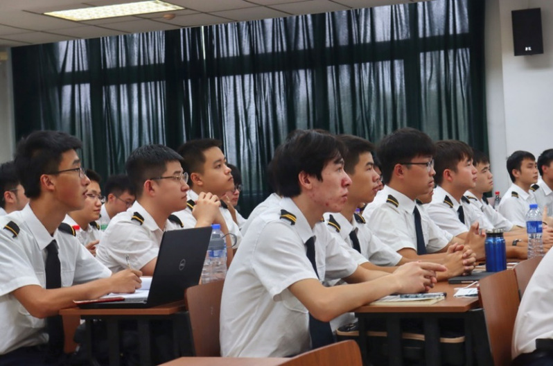 随后,飞行学员和外教老师开始了第一次的线上课程。学生们统一制服,以饱满的精神面貌参与课堂。在老师们的帮助下,同学们逐步适应课堂。