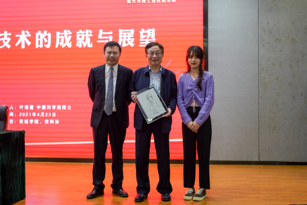 报告结束后,学生代表孙思婷向叶培建院士送上自己现场手绘的院士肖像画,表达深深的敬意和祝福。