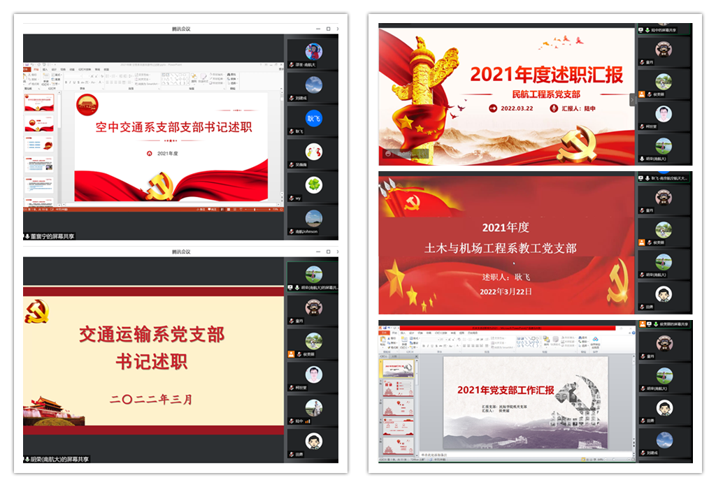 在听取支部书记述职报告后,学院党委委员对教工党支部的工作表示肯定,各支部在2021年度结合自身特色,发挥优势,高质量推进支部建设,工作成效明显,充分发挥了支部战斗堡垒和党员先锋模范作用。同时提出,教工支部间、教工与学生党支部间要加强交流联动,形成优势互补,更好地促进学院整体工作发展。支部书记们表示,述职会是一次很好的学习交流会, 2022年将继续扎实推进支部建设,聚焦校庆70周年和二十大召开,谋划好系列党内主题教育活动,进一步推动党建和业务深度融合,确保支部战斗堡垒作用的充分发挥。