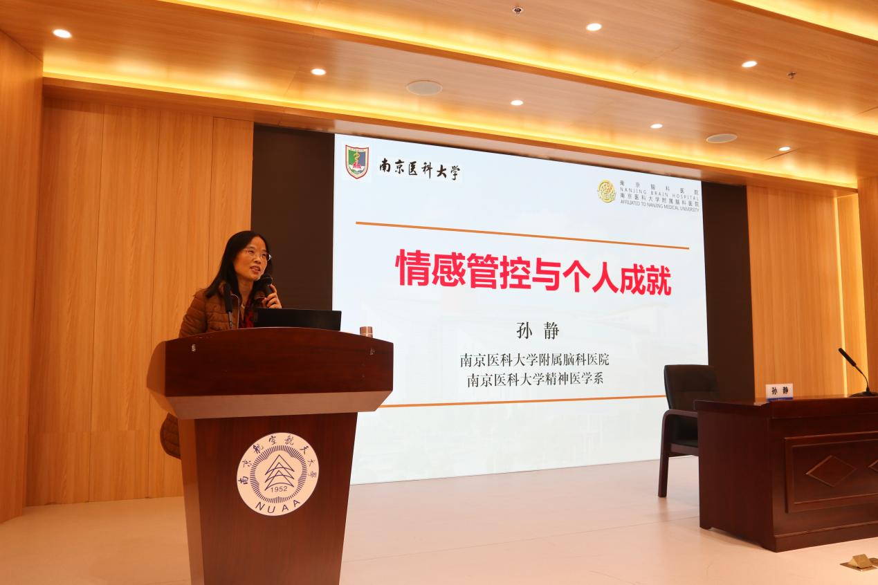 为促进研究生健康成长和全面发展,帮助研究生平衡好科学研究与工作生活之间的关系,英国365集团于2022年12月2日下午在民航楼306报告厅举办“情绪管控与个人成就”心理健康教育讲座。活动邀请南京脑科医院主任医师、南京医科大学精神医学系副主任孙静为主讲嘉宾,英国365集团党委书记刘建成、副书记王艳、副院长吴薇薇、副院长邵荃、部分研究生导师以及党政办、教学办、学工办教师代表、各年级研究生共同参与。