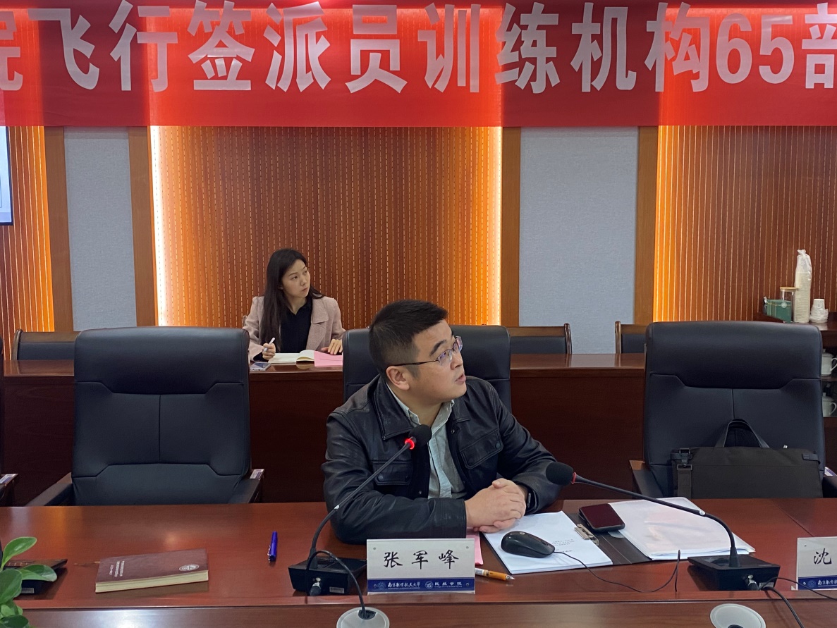随后空中交通系主任张军峰汇报《符合性声明》、《训练大纲》、《训练管理手册》、《人员资格证明》等修订情况。