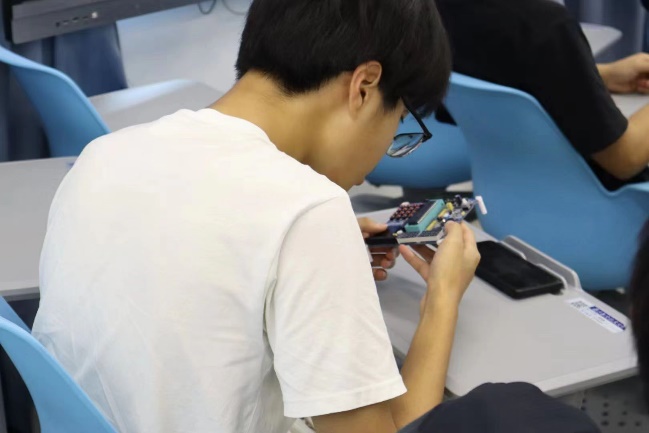 “创新能力永远是基于可创之上的。”这是陈劲学长科创与成绩始终保持共同进步的秘诀。他告诉同学们一切科创活动都需要在保证学业成绩的前提下进行,不能本末倒置。在最后,他将自己的科创作品给同学们传阅,同学们充满兴趣,与陈劲学长一起交流,提出问题,沉浸在“教”与“学”的良好氛围之中。