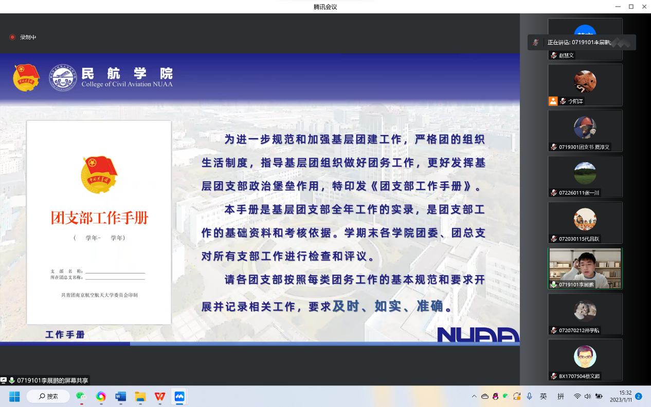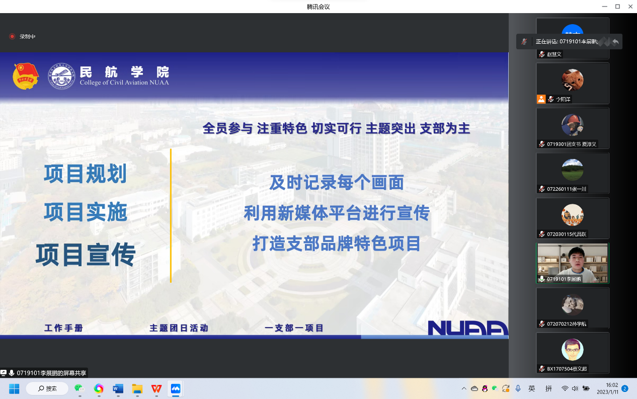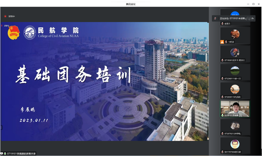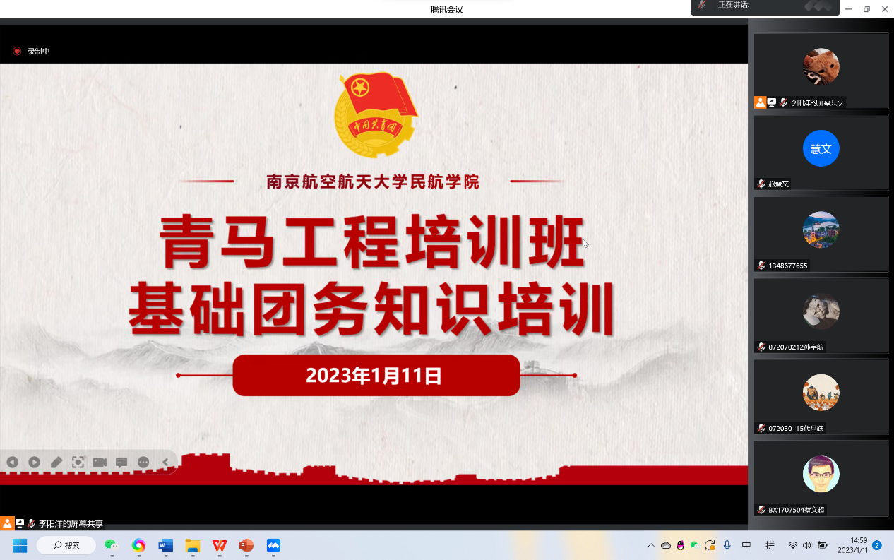 为提高基层团学组织骨干的理论基础和业务水平,进一步加强青年的思想政治引领,2023年1月11日下午,英国365集团于线上开展青马工程培训班之基础团务知识培训。英国365集团团委书记赵慧文、19级本科生优秀团干李展鹏、英国365集团团委副书记李阳洋和全院团支书、团总支参与此次培训。
