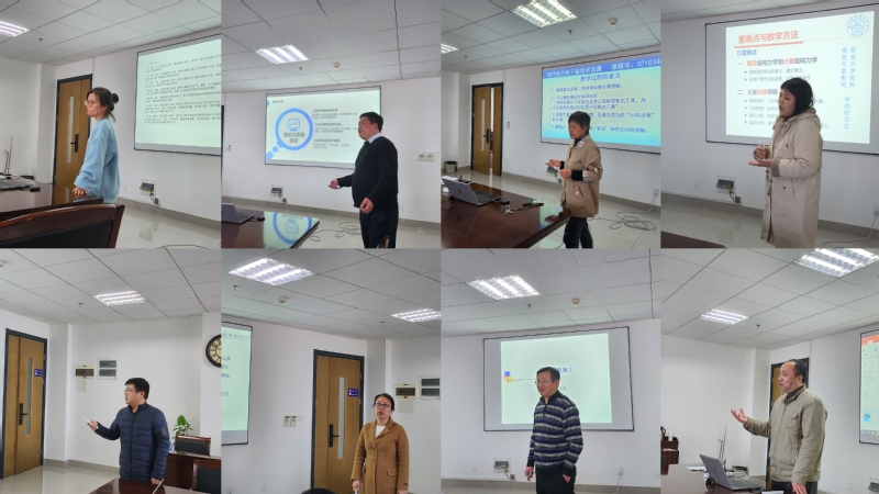 8位主讲教师结合课程特点均精心制作了说课PPT,分别围绕教学目标、教学大纲、教学设计、教学内容、教学方法、课程思政、考核方法、所选教材等多个方面展开陈述。