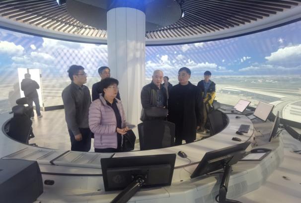 座谈会后,田新民一行参观了学院可靠性与适航技术研究中心、360°全景塔台模拟实验室和御风园航空航天教育教学实践基地。