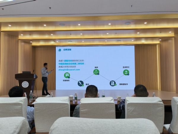 报告会开始时,中国民用航空总局第二研究所人事处义正副处长进行了校园宣讲环节,简要介绍了民航二所的研究领域、技术实力、企业文化、发展平台和岗位需求,为希望进入民航系统工作的毕业生提供借鉴和参考。他期待南航民航学子的加入,在岗位上发光发热,共同努力促进我国民航事业发展。