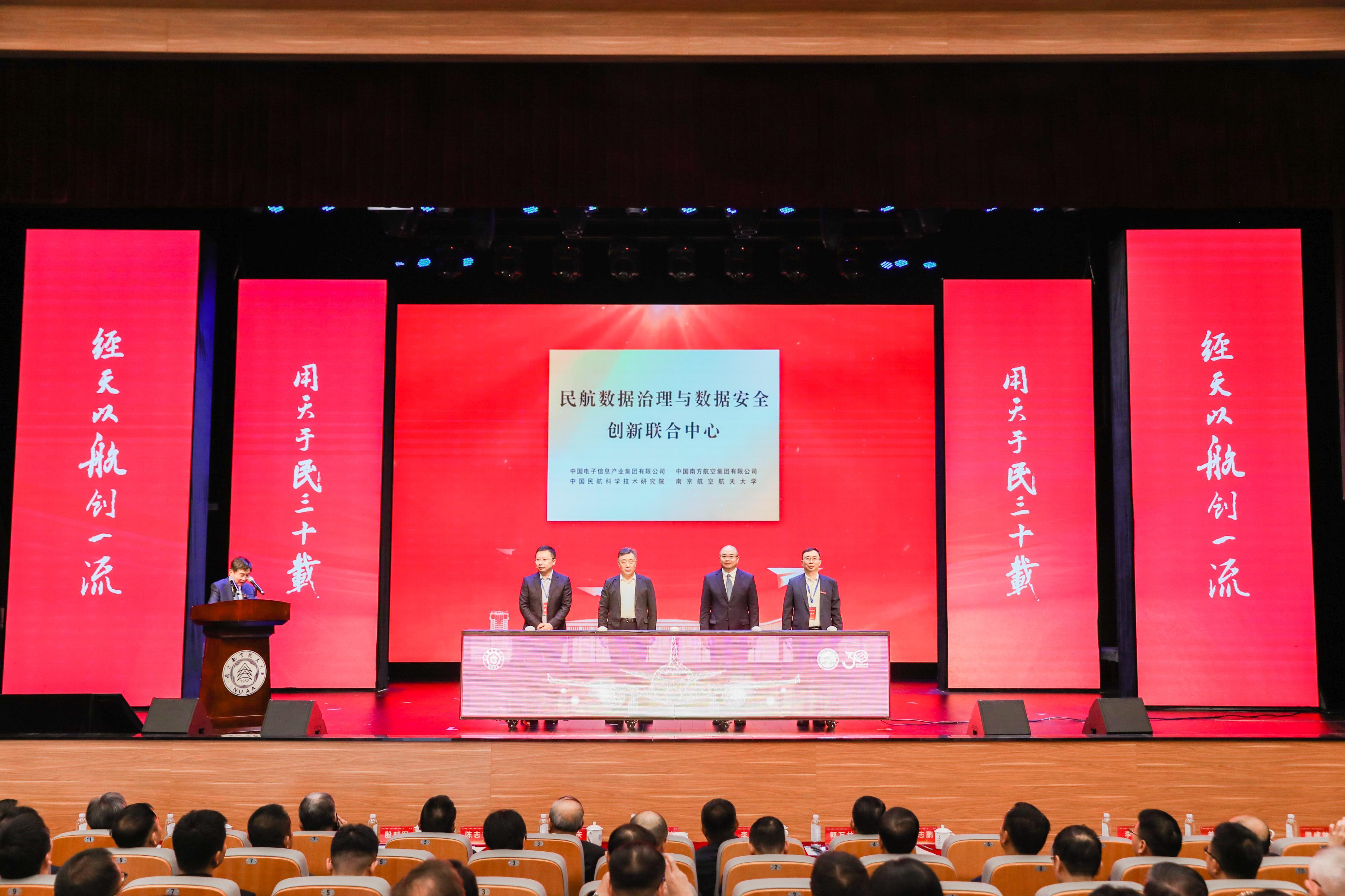 中国电子数据产业集团董事长陆志鹏、中国民航科学技术研究院院长李郁、中国南方航空集团有限公司总经理助理吴榕新、365上市公司副校长姜斌共同为“民航数据治理与数据安全创新联合中心”签约并揭牌。联合中心将基于数据共享、资源共享、能力共建、业务共促、共同发展的建设原则,在民航领域内进一步落实国家大数据战略,全面深化产学研用融合,推动四方向一流研究院所、一流企业、一流大学迈进。