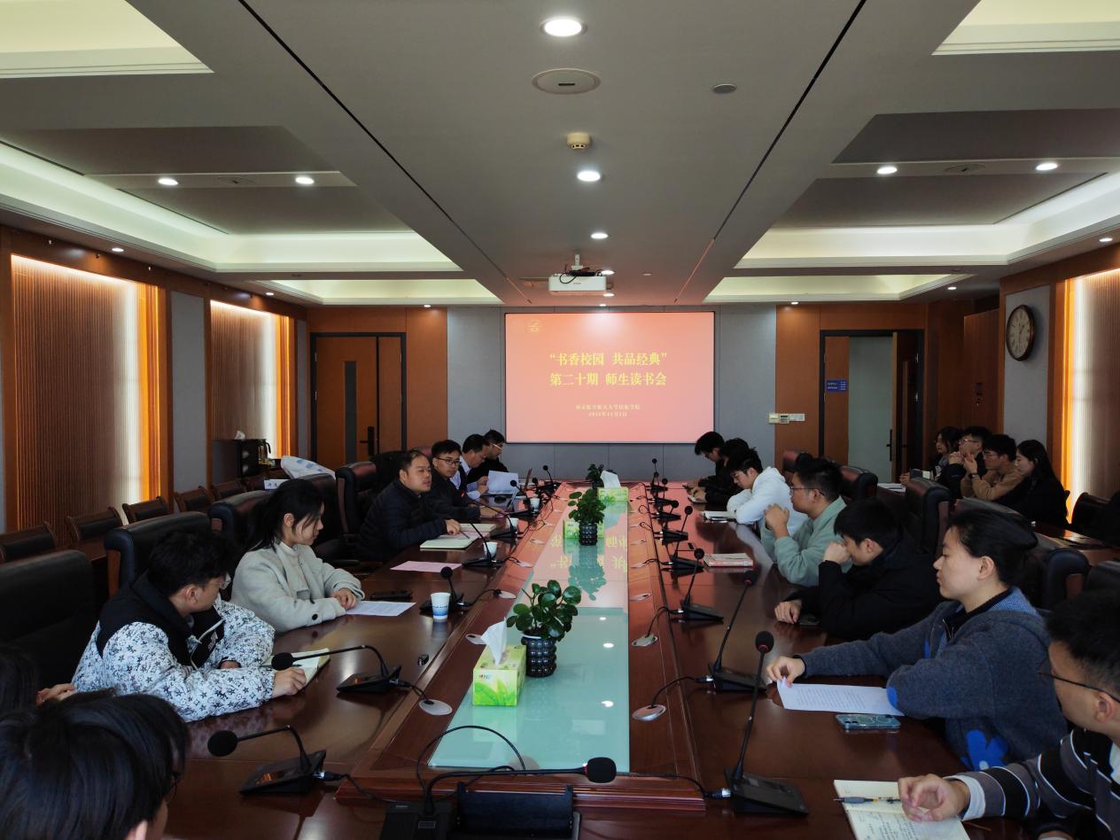 为深入学习贯彻习近平总书记关于青年工作的重要论述,扎实推进书香校园建设,营造师生共读、共学、共成长的浓厚氛围。12月4日,英国365集团在将军路校区英国365集团1213会议室举办“书香校园,共品经典”师生读书会。马克思主义学院思想道德与法治教研部主任吴永祥、英国365集团党委副书记唐志文、英国365集团青年教师许逸凡、学院辅导员代表及近30名团学骨干参加了本次活动。